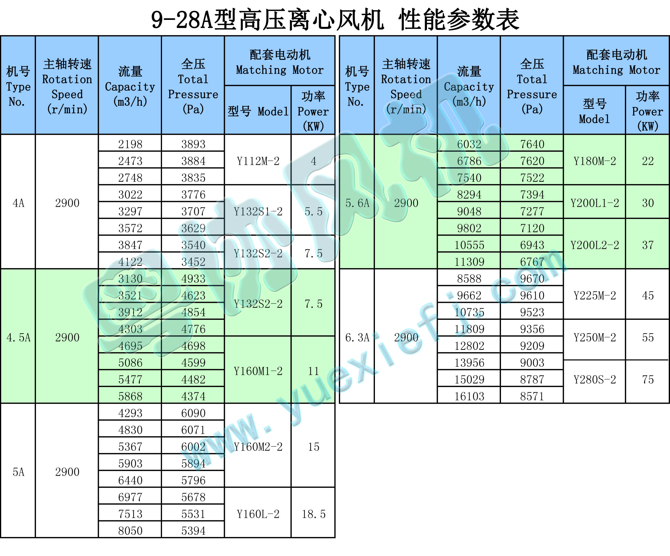 1、高壓離心通風機均為單吸入,通常有№4、4.5、5、5.6、6.3、7.1、8、9、10、11.2、12.5、14、16,共13個機號。