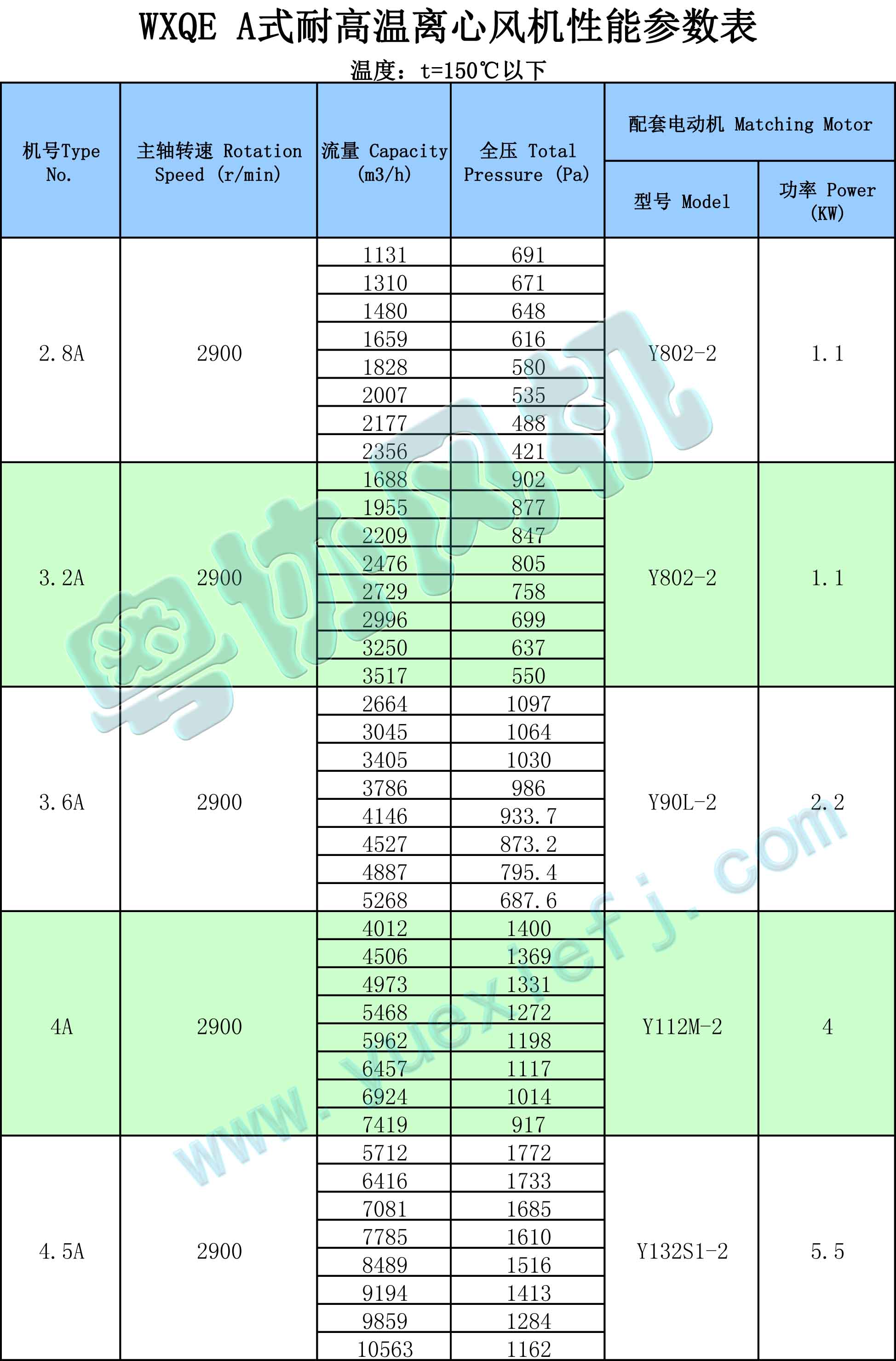 WXQEA式加長軸碉高溫離心風機系列熱風循環風機:風量大,壓力低,高效區廣,噪音低,視循環氣體溫度高低,可選主軸風冷或水冷;訂貨時請注明是否加保溫棉 空氣和其它不自燃、對人體無害的、對鋼鐵材料無腐蝕性的氣體。氣體內不許有粘性物質,所含的塵土及硬質顆粒不大于150mg/m3。