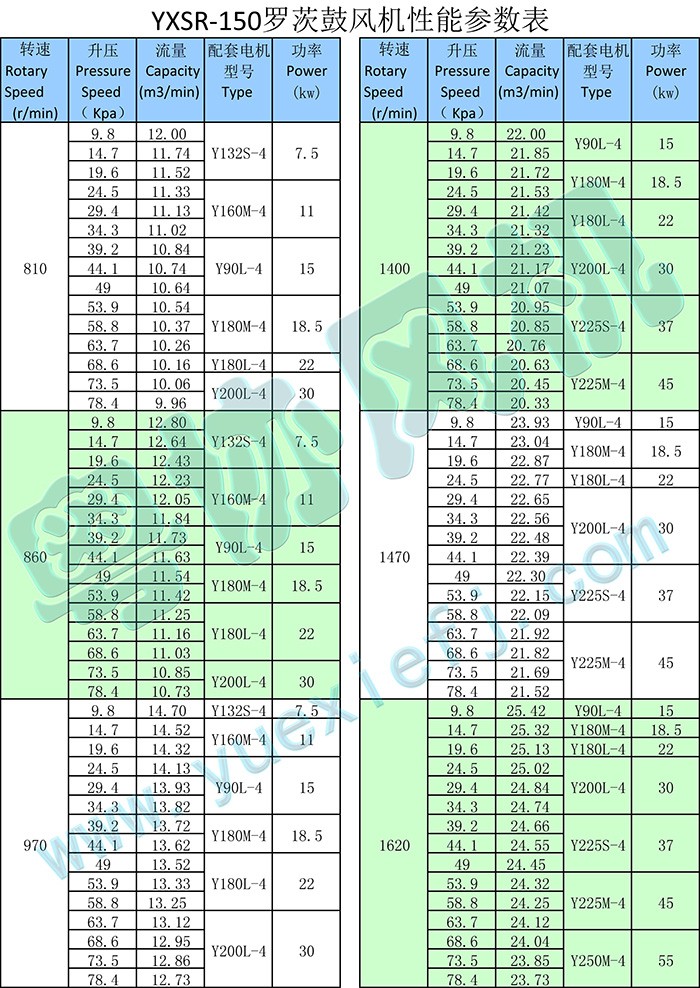 YXSR150羅茨鼓風機工作原理:三葉羅茨鼓風機通過機體內同步齒輪的作用,使兩葉輪相對地呈反方向旋轉,葉輪之間以及葉輪與機體之間皆具有適當的工作間隙。機殼材質HT200,葉輪在旋轉過程中使進、排氣口相互隔開,...